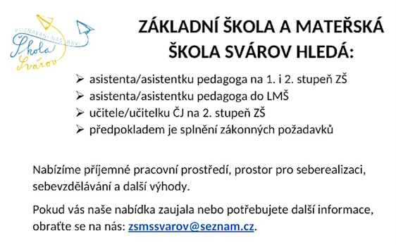 Svárov, škola se 120 letou tradicí, hledá spolupracovníky do svého týmu