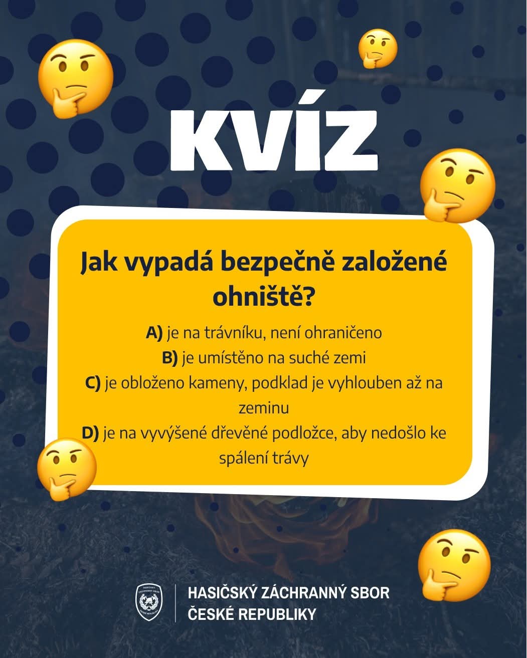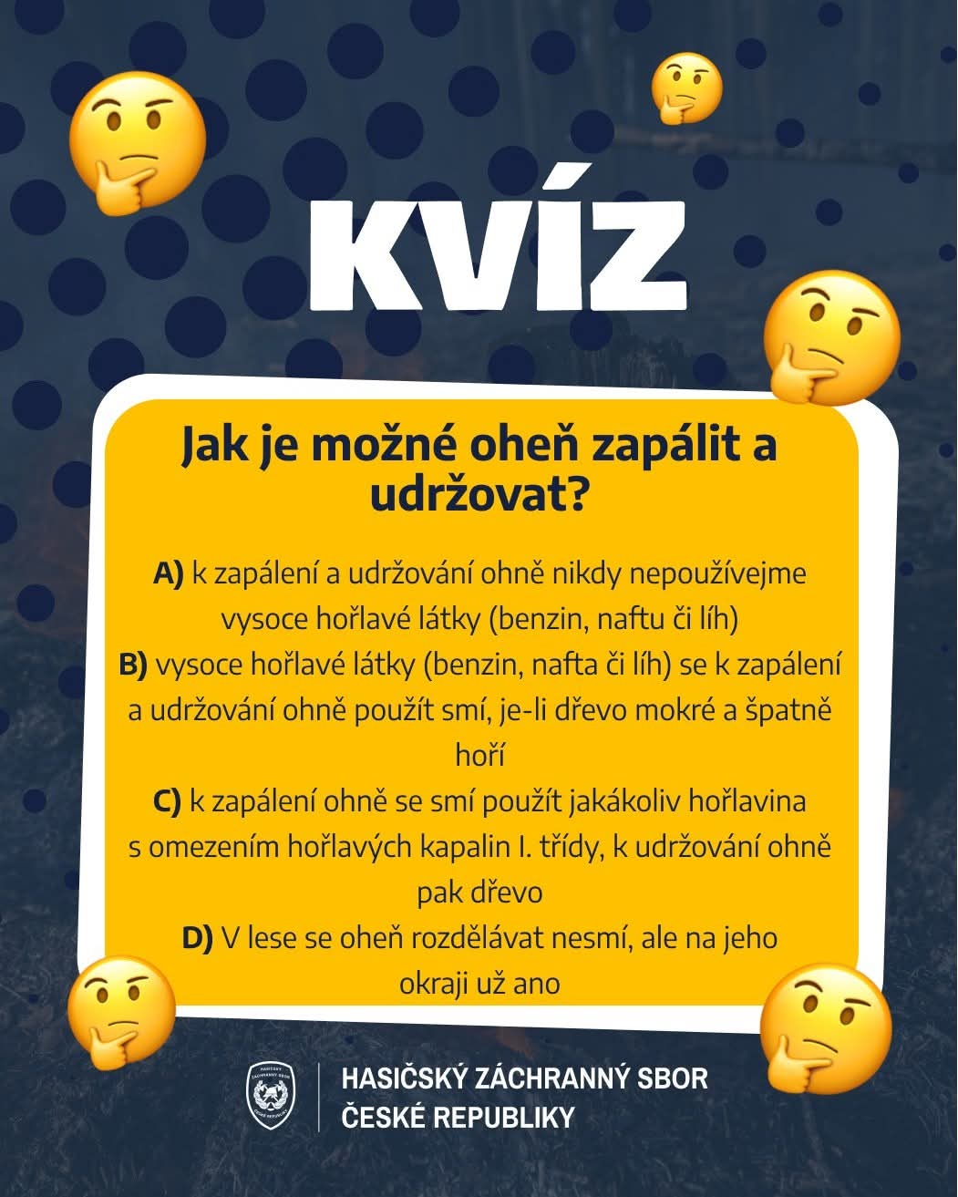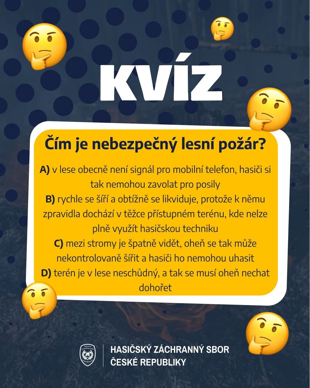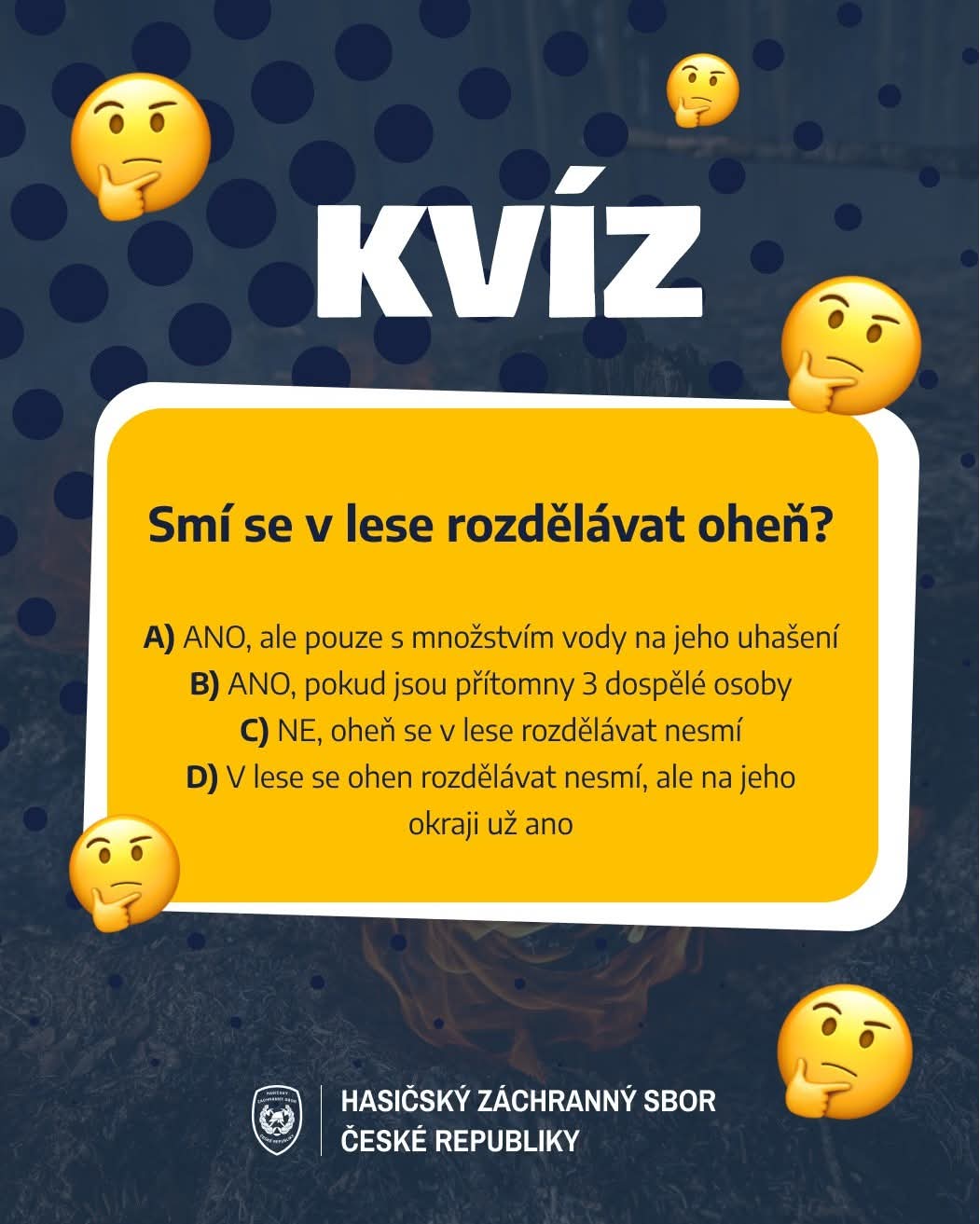 Na odeslání odpovědí máte čas do neděle 15. června, 23:59. V pondělí 16. června pak budou ze správných odpovědí vylosováni výherci, kteří získají tematické dárky spojené s požární bezpečností.