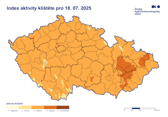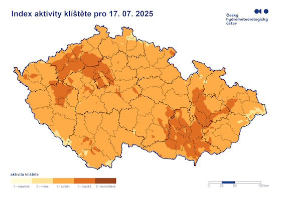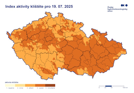 Index aktivity klíšťat pro ČR na následující tři dny, nepodceňujte možnou nákazu