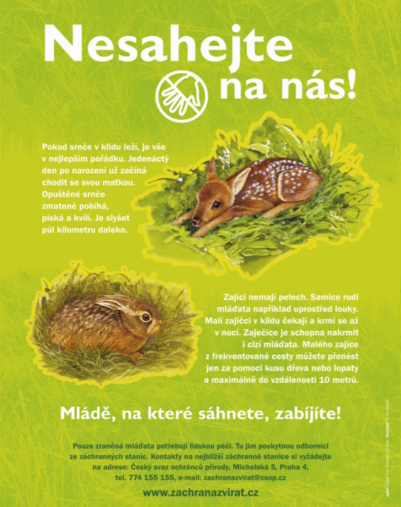 Dobrou zprávou je, že veřejnost se začíná chovat zodpovědněji a stále častěji respektuje doporučení odborníků mláďata z přírody zbytečně neodebírat. Z celkových 414 novorozených zajíčků, kteří skončili v péči stanic, bylo pouze 39 přivezeno zbytečně – tedy v situaci, kdy by bylo bývalo lepší je ponechat matce. V případě srnčat byla situace ještě lepší – ze 102 přijatých mláďat byla zbytečně odebrána jen čtyři. Lidé si dnes zjevně mnohem častěji než v minulosti ověřují, zda a jak se mají v případě nálezu mláděte zachovat. Nejdříve volají odborníky, teprve potom konají. A většinou rada odborníků zní: „Ponechte klidně ležící mládě na místě a vzdalte se.“