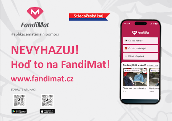 Na to nově upozorňují informační samolepky, které v pilotním projektu vylepil Středočeský kraj se zástupci neziskové organizace Fandi mámám ve třech středočeských městech. Díky mobilní aplikaci FandiMat mohou lidé pohodlně darovat textil a tím pomoci lidem v nouzi i snížit zbytečné plýtvání.