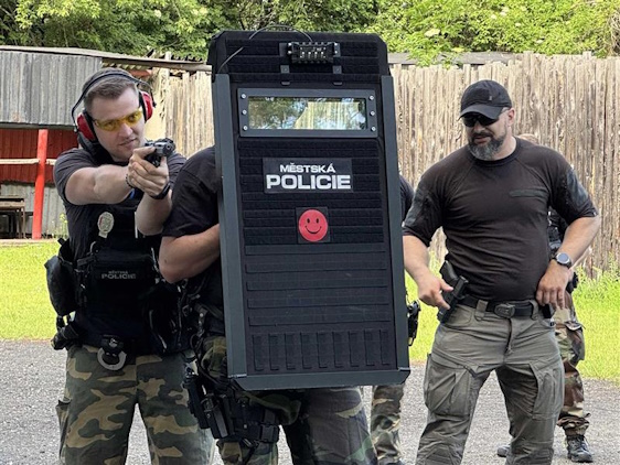 „V poslední době se začal více objevovat problém s odloženými zavazadly s nástražným výbušným systémem a bohužel narůstají útoky aktivního střelce. Proto jsme se na posledním výcviku s kladenským strážníky věnovali práci a střelbě v kombinaci s neprůstřelným štítem. Jedná se o základ pro taktiku, kterou používá i Policie České republiky,“ uvedl instruktor. Pro krajní případy je totiž Městská policie Kladno vybavena i dvěma neprůstřelnými štíty proti dlouhým zbraním.