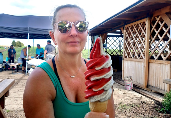 Stále je k dispozici nádherné kukuřičné bludiště i když už byla vítězka letní soutěže obdarována zajímavými cenami přesto jistě potěší jeho návštěva a bezesporu si můžete po práci na polích při samosběrech dát víc než skvělou, zdravou a chuťově jedinečnou zmrzlinu z vlastních produktů, bez chemie a ztužovadel.