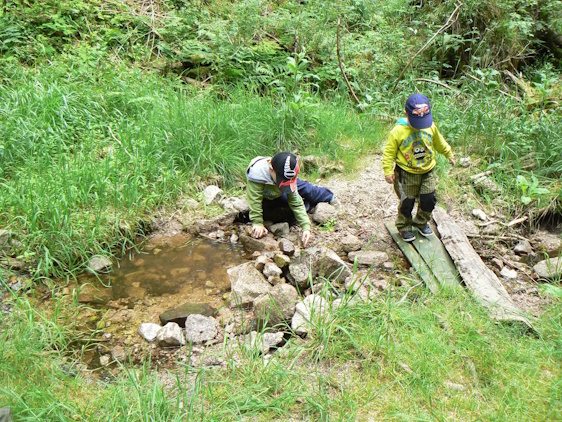 Odpoledne je přestal hrad bavit a seběhli 200 metrů k potůčku, kde stavěli hráz, chytali žáby, oždibovali maliny a snažili se jeden druhého zmáchat. To se naštěstí nepovedlo. Měl jsem sebou jen náhradní spodní prádlo a trička.