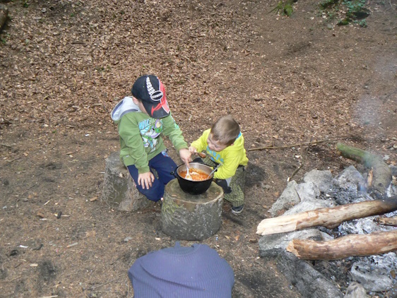 Večer jsem udělal Rytířské fazole. V batohu byly dvě plechovky fazolí a zbyly dva buřty. Koukali na to všelijak, ale když jsem to vznešeně nazval a upozornil, že tohle opravdu rytíři jedli, snědli skoro celý kotlík.