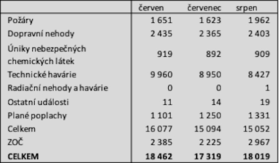 Letní měsíce opět přinesly vyšší vytíženost hasičů, téměř 53 800 událostí, nejvíce výjezdů měli hasiči v Moravskoslezském kraji.
