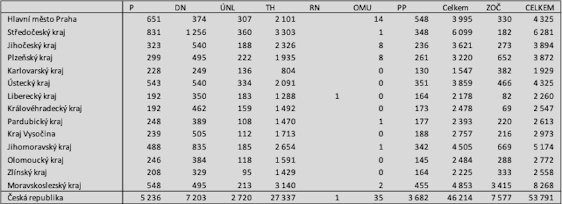 Z pohledu jednotlivých krajů měli nejvíce práce hasiči v Moravskoslezském kraji, kde řešili celkem 8 268 událostí. Následoval Středočeský kraj s 6 281 událostmi a Jihomoravský kraj s 5 174 zásahy. Tyto tři kraje se tak tradičně řadí mezi nejvytíženější regiony.