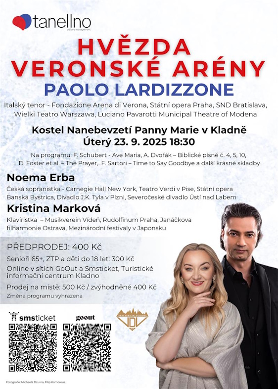 Světový tenor Paolo Lardizzone vystoupí společně s oblíbenou sopranistkou Noemou Erbou a výbornou klavíristkou Kristinou Markovou.