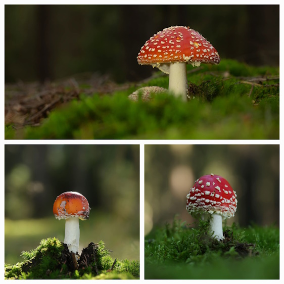 Tři příklady: Jedna je přírodní recyklátor (Třepenitka), druhá drahokam lesů Lakovka ametystová (Laccaria amethystina), třetí kulturní symbol (Muchomůrka).Vždy je důležitější obdiv, než snaha o konzumaci.“