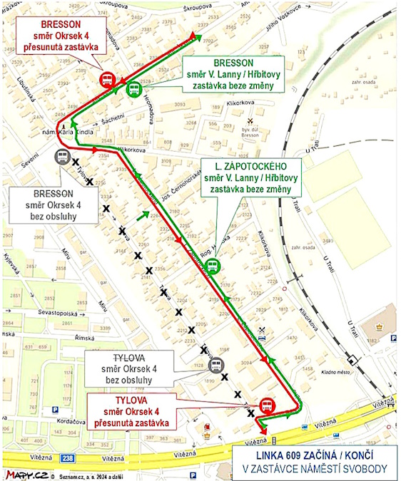 Od pondělí se vrací linka 603 na svou obvyklou trasu. Přesun pouze zastávek Bresson a Tylova