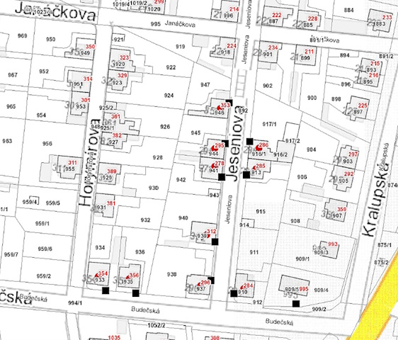 - Jeseniova: č. p. 278, 284, 285, 286, 295, 312, 353