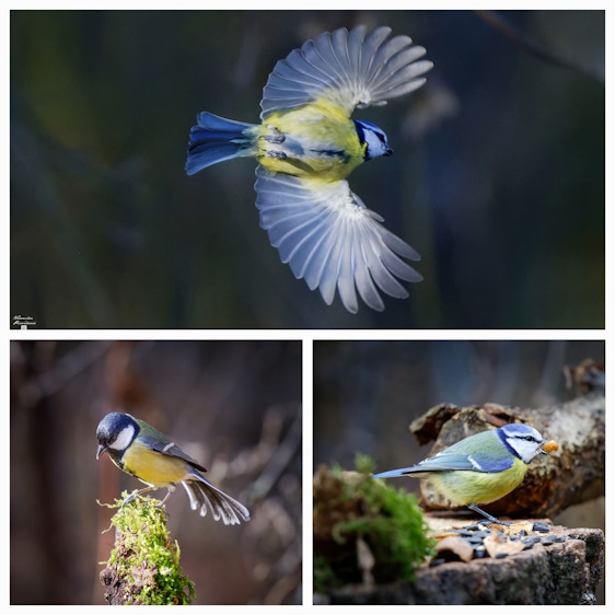 2. Sýkora modřinka (Cyanistes caeruleus)Menší, ale nápadně elegantní modrá krasavice.