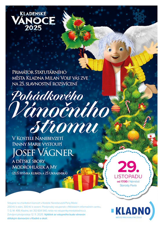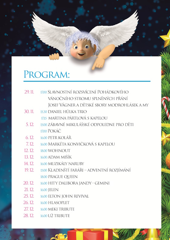 V sobotu 29. listopadu se mohou všichni návštěvníci náměstí Starosty Pavla těšit na zahájení jubilejního 25. ročníku včetně Slavnostního rozsvícení Pohádkového vánočního stromu splněných přání a oblíbených vánočních trhů. Součástí adventu na Kladně budou již tradičně trhy, kluziště, živý betlém se zvířátky, vánoční vláček a pódium, na kterém vystoupí pestrá škála českých interpretů.