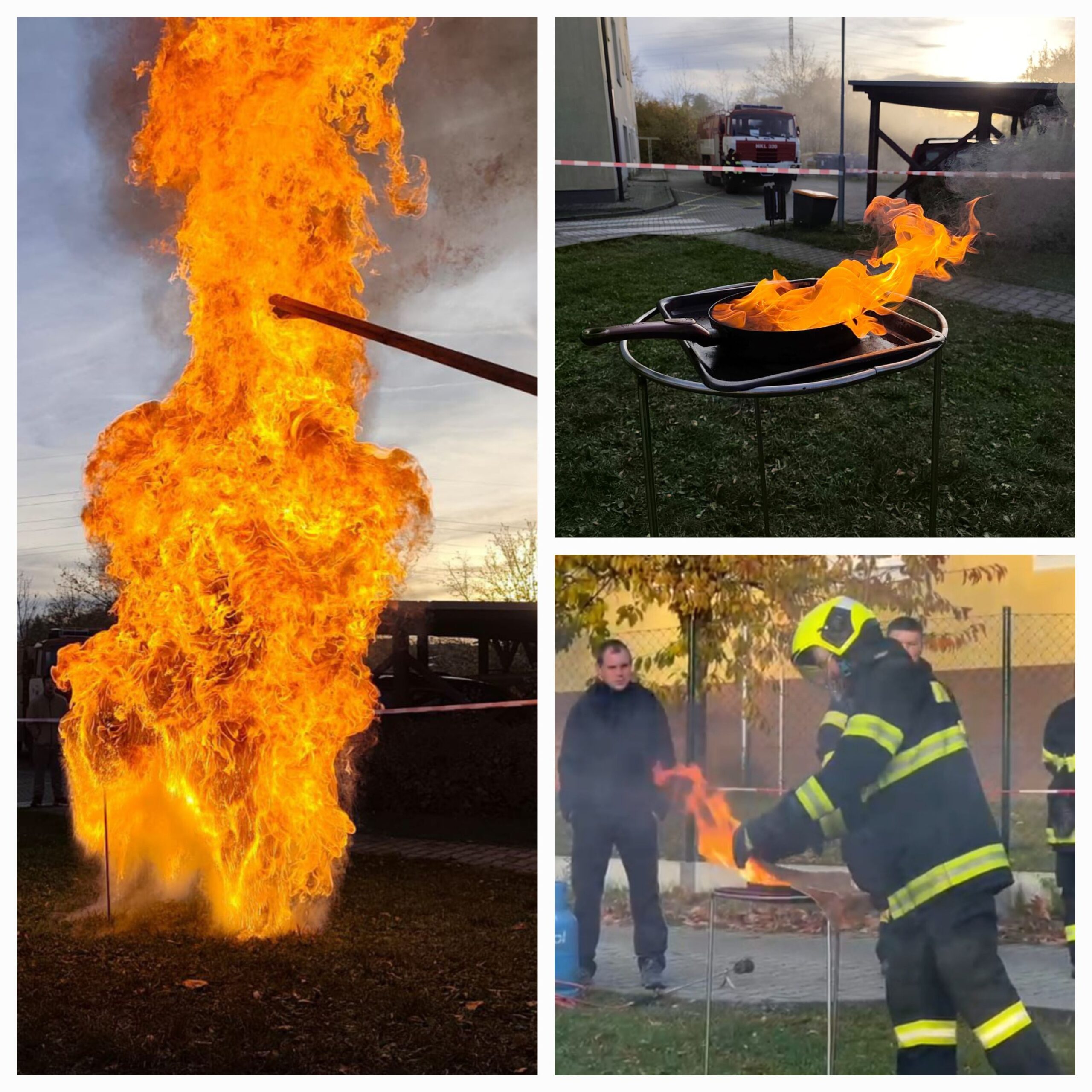 Závěr programu patřil ukázkám hašení – děti sledovaly, jak správně (a jak rozhodně ne) hasit hořící olej a jak se používá hasicí přístroj. Ukázky byly doprovázeny odborným výkladem, s důrazem na bezpečnost.