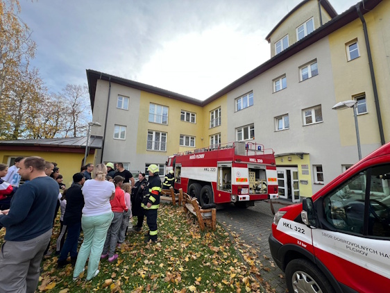 Evakuace dětského domova v Unhošti, naštěstí nanečisto, v režii hasičů z Plchova
