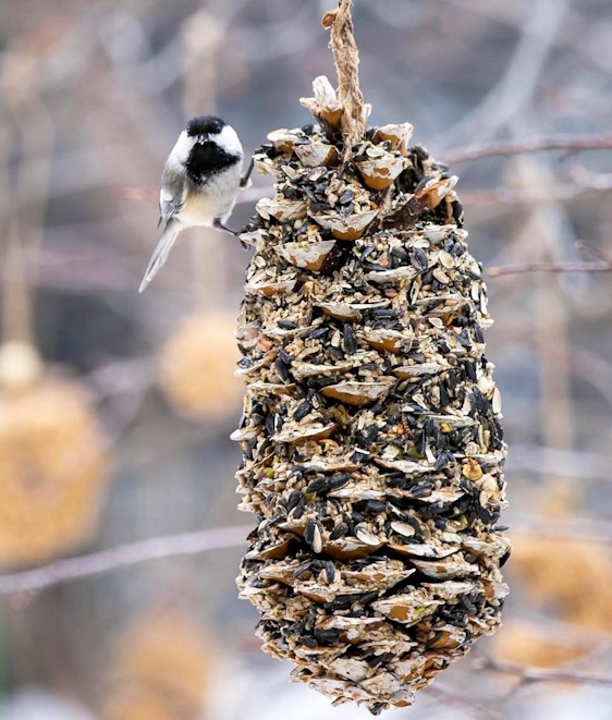 3. Lůj pověšený na kmenu stromu přitahuje šplhavce – strakapoudy, datly, brhlíky.