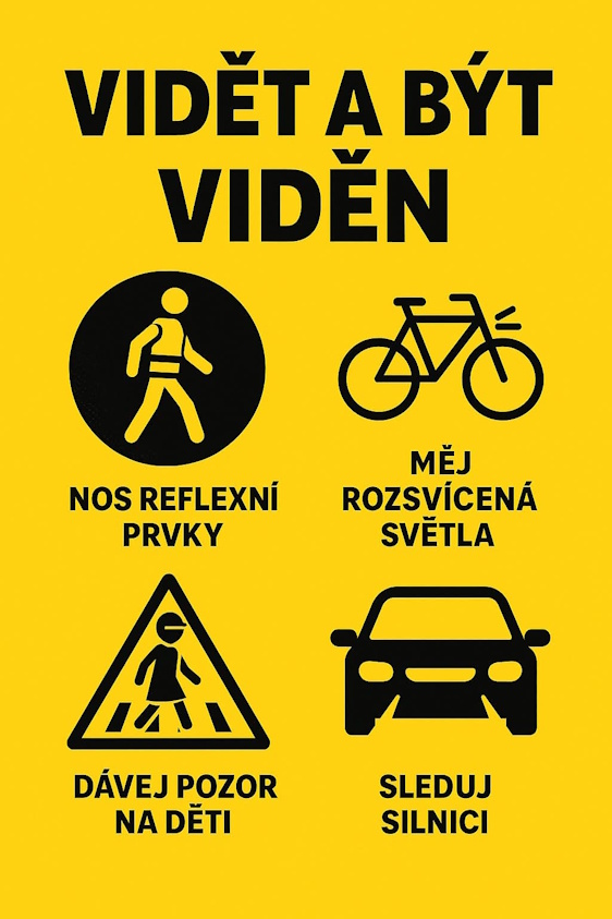 Podzim. Brzy se stmívá, stejně jako i rána jsou zahalena pláštěm černočerné tmy a často i mlhy. Zvláště pro špatně viditelné chodce se tak stávají silnice velmi nebezpečným místem. Řidiči pak mnohdy spatří překážku na vozovce doslova na poslední chvíli.