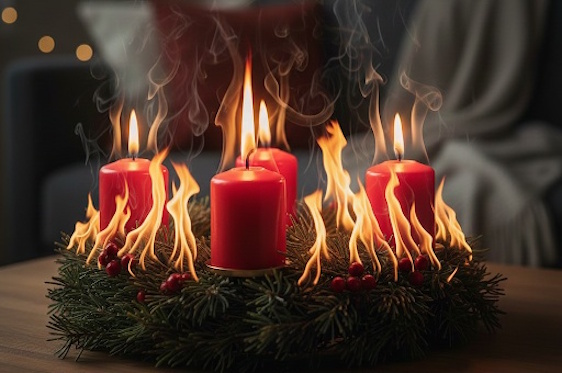 Jakýkoli otevřený oheň představuje požární riziko a nejčastější příčinou požárů je lidská nedbalost při manipulaci s ním. Hořící svíčka dokáže zapálit věnec i jeho okolí během několika málo vteřin. Teplota může ještě ve vzdálenosti 8 cm od plamene dosáhnout až 200 °C, a to bohatě stačí k zapálení nejen stromečku či papírových, plastových nebo přírodních dekorací na věnci a v jeho okolí, ale třeba taky závěsů a záclon nebo nábytku.