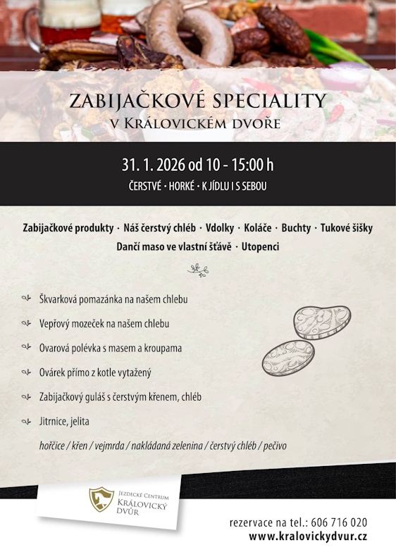 V dnešní uspěchané době je vzácné najít místo, kde se věci dělají „postaru“. V Královickém dvoře se proto rozhodli na chvíli zastavit čas. Žádné průmyslové polotovary, ale poctivé řemeslo pod širým nebem. Od 10:00 hodin se Královický dvůr promění v dějiště té pravé staročeské zabíjačky, kde hlavní roli hraje tradice, mistrovství řezníků a dobrá nálada.