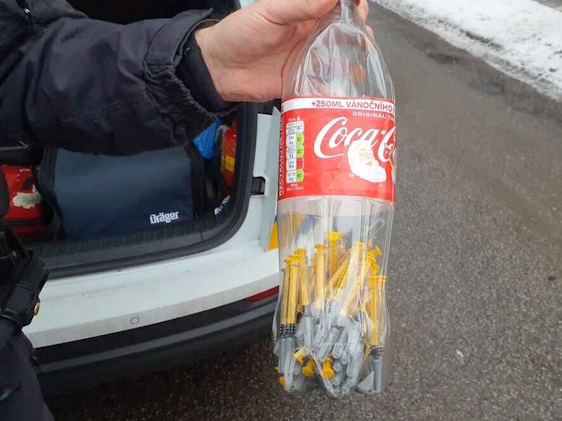 Do rukou strážníků na Kladně odevzdal desítky použitých stříkaček zodpovědný občan