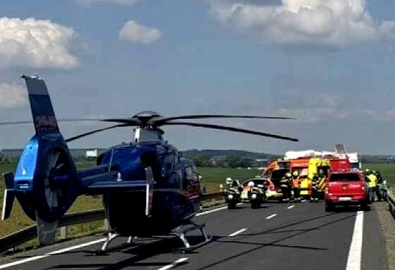 Složky IZS, včetně vrtulníku, zasahují u nehody cyklisty a osobního vozidla